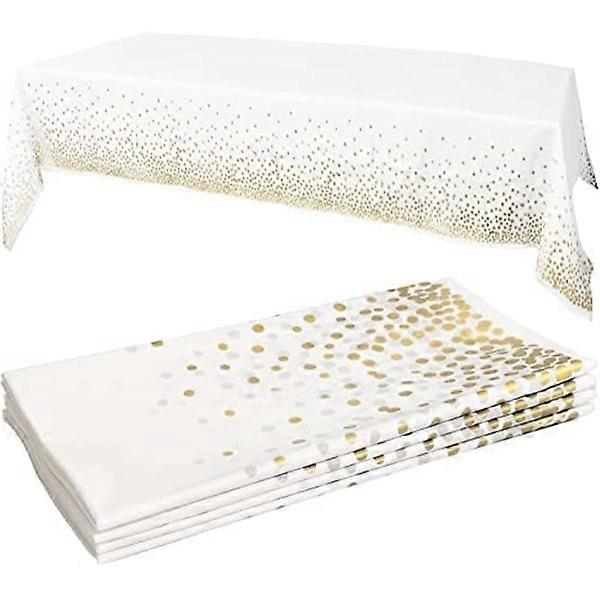 Prestee White/Gold Tablecloths, 4-Pack, 137*274CM - Gold Dot Disposable Tablecloths - Plastic Tablecloth Disposable