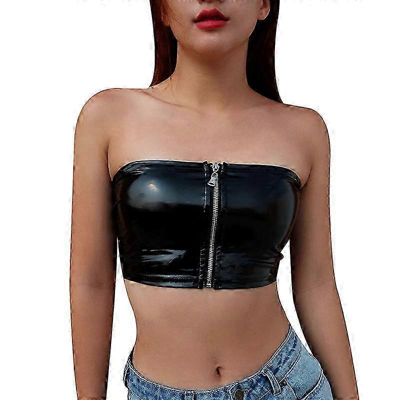 Fabric name: PU foil Collar Type: One-piece Fit: slim fit Fabric has slight stretch, comfortable to wear, and if you have a plump figure, we recommend that you choose one size larger Feature: sleeveless, strapless, pleather, slim fit, solid color, sexy and casual style Occasions: suitable for club, hanging out, dating, weekend casual and summer daily wear