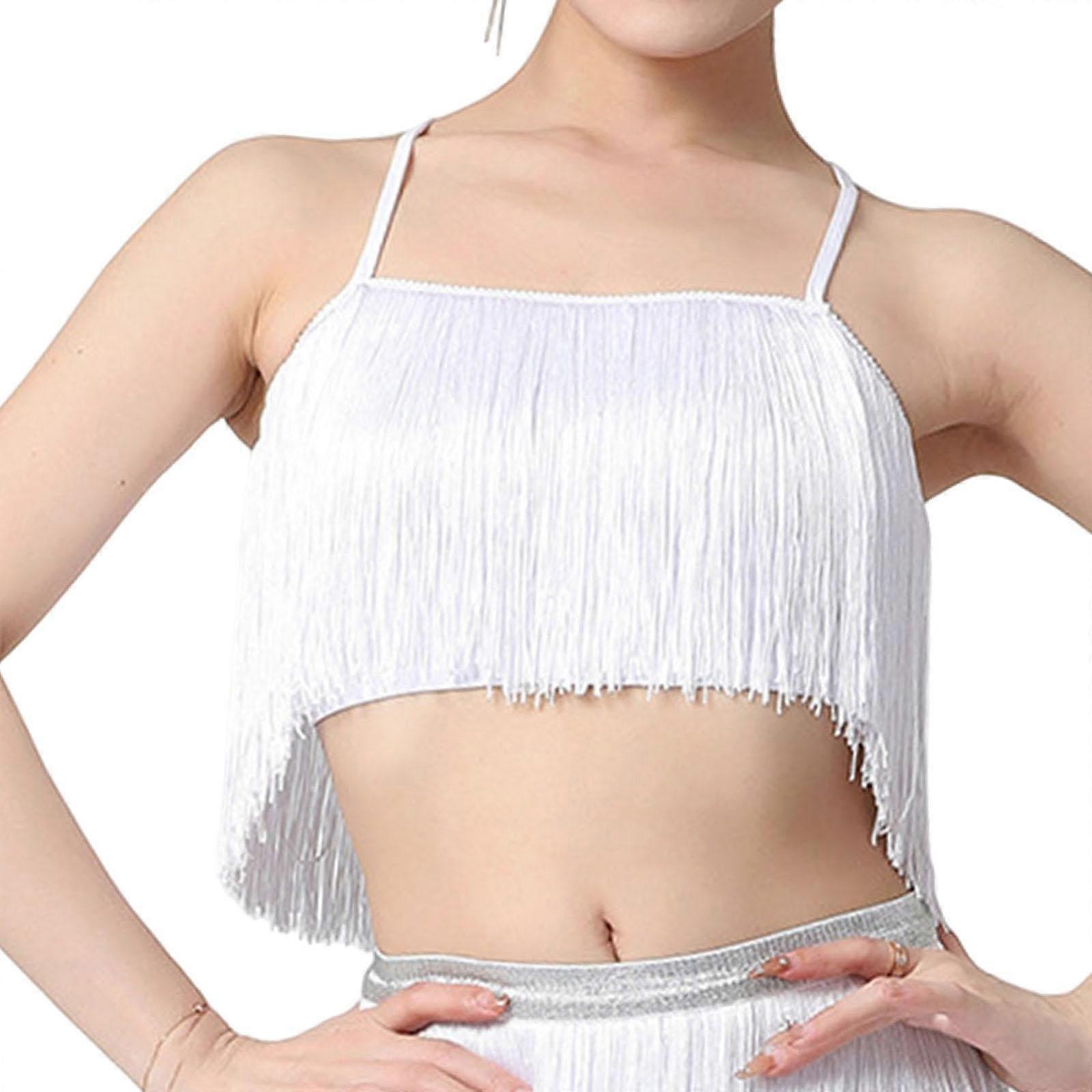 Women Tassels Fringe Dance Top Top for Club Dressing up Masquerade White M