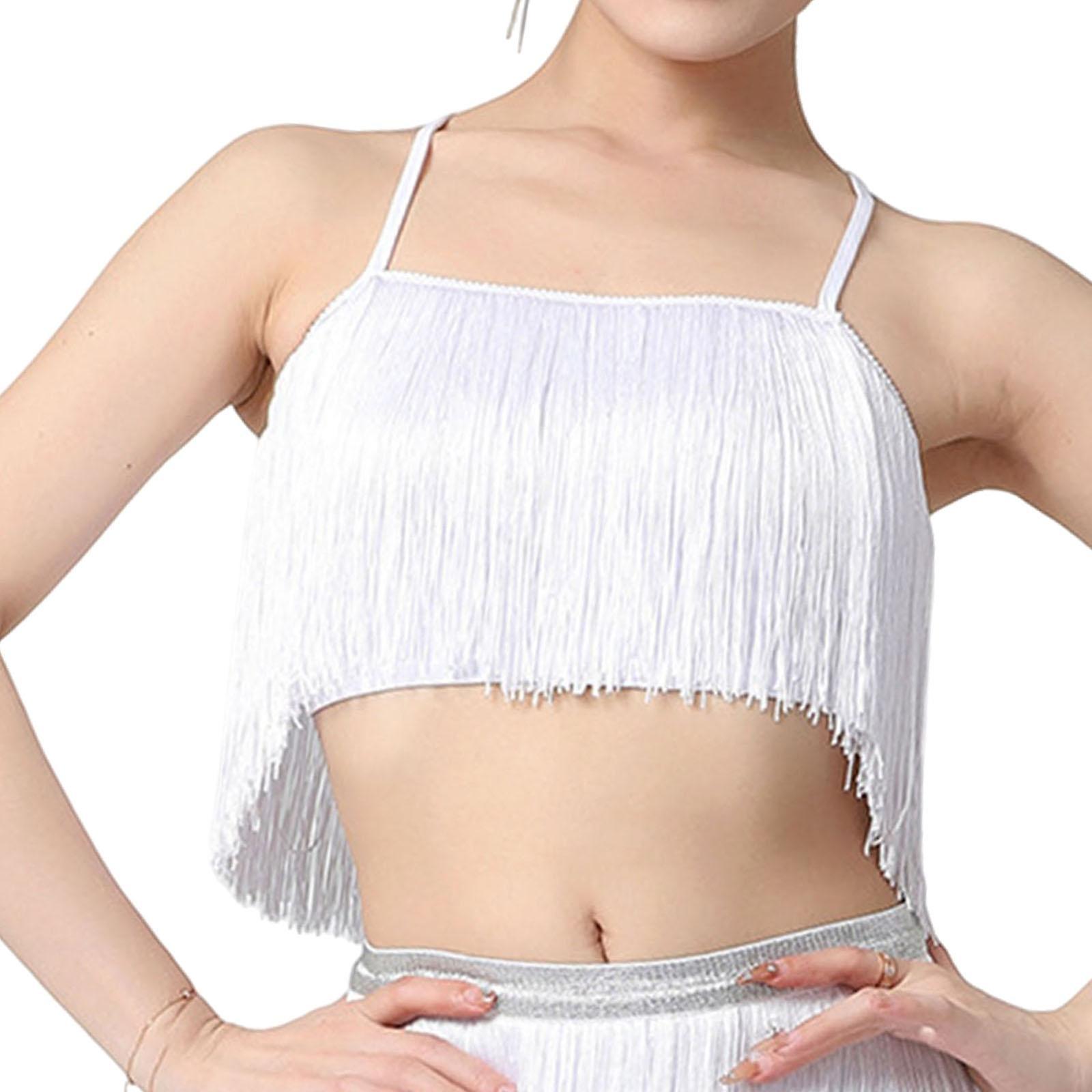 Women Tassels Fringe Dance Top Top for Club Dressing up Masquerade White M