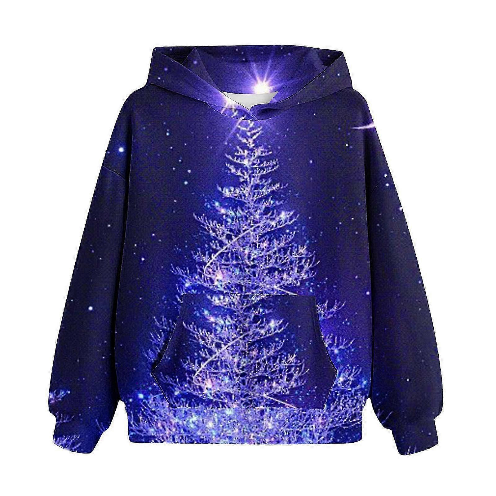 Purple C Christmas Tree Print Long Sleeved Round Neck Top for Boys and Girls of All Ages, Suitable with Hooded Sports Hoodies