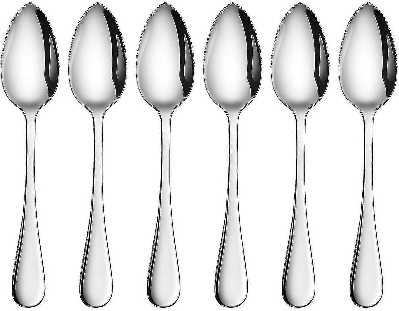 Grapefruit And Dessert Spoon - Stainless Steel With Serrated Edge 6.5 Inch, Set Of 6
