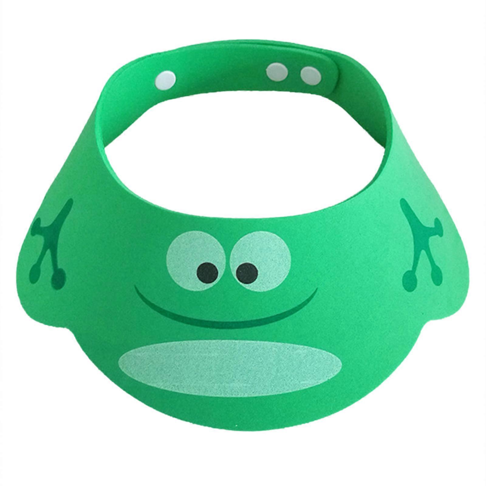 EVA Shower Cap Kids Shield Adjustable Hat with Ear Protections Waterproof Bathing Hat for Toddler Baby Kids Children Green
