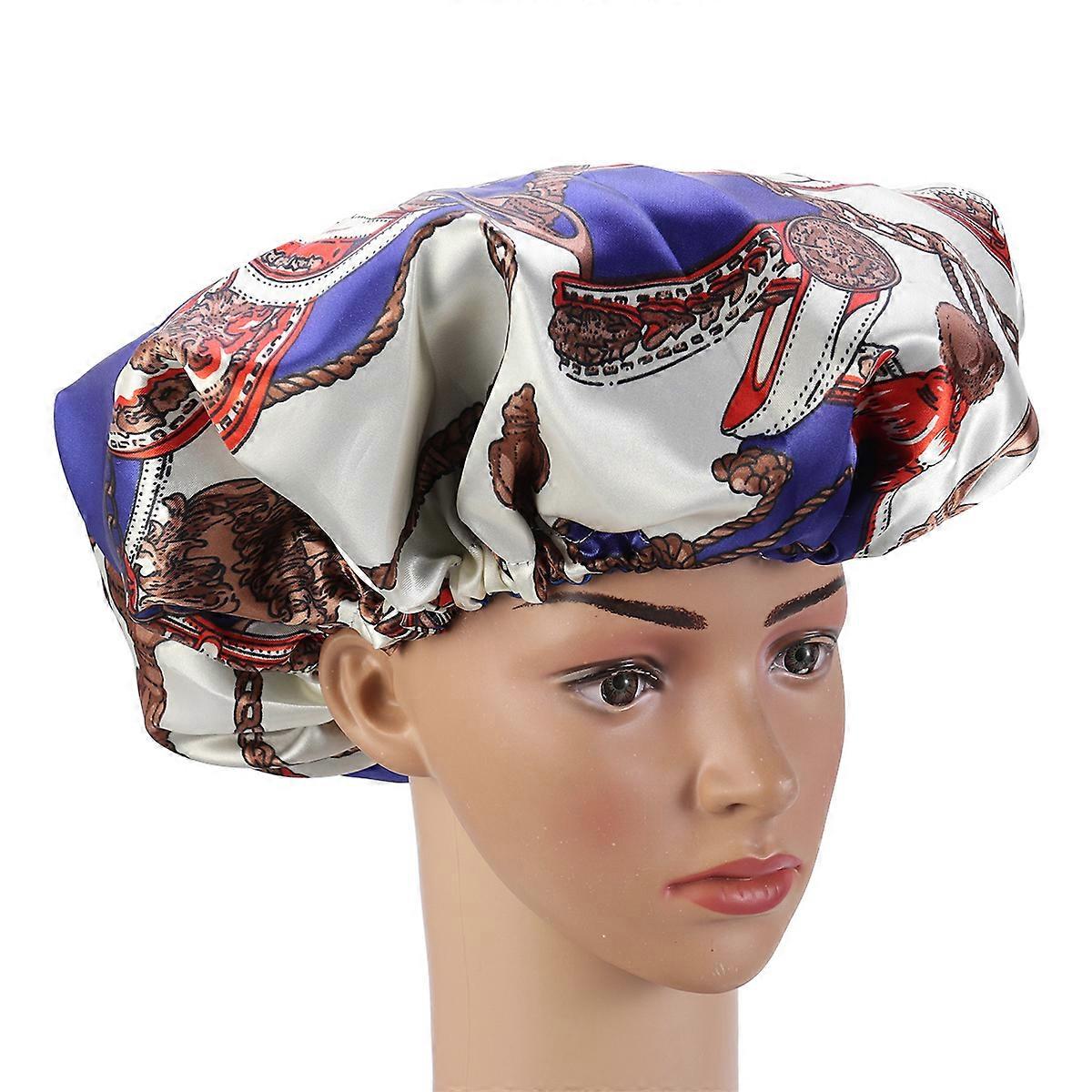 Satin Sleeping Bonnet Large Sleep for Women Sleepwear Blue Double Layered Elastic Band 1Set