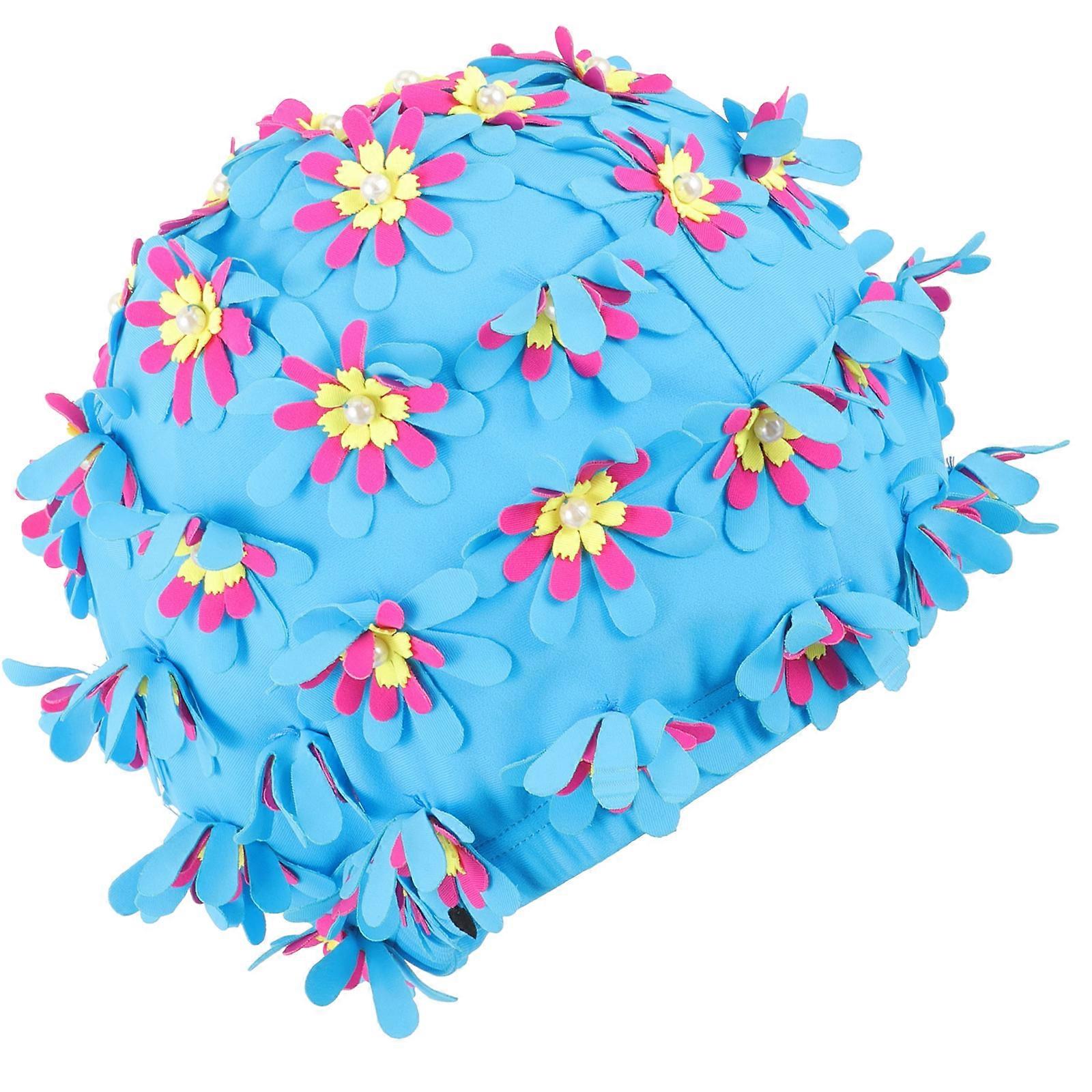 Flower Swimming Cap For Adults And Girls -blue Color Designed For Swimming And Water Sports With Waterproof Function In 1Pack