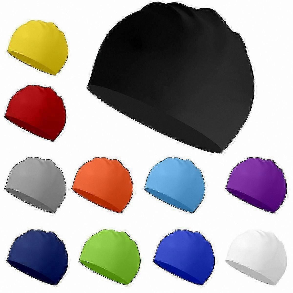 Non-slip design, easy to put on and take off. The ripstop premium material is tough yet flexible, keeping your long hair safe and dry without leaking or tearing, making your swim more enjoyable. Swimming cap for recreational and competitive activities including regular swimming, synchronized swimming, water polo, and more. Enhances speed in the water with a lightweight, wrinkle-free, and elastic design. Features a secure fit that helps protect ears from chlorine and bacteria during active swimming. Made of 100% silicone, odorless, non-toxic, skin-friendly, and non-allergenic. Constructed from premium 100% silicone material that won’t tear and maintains its shape. Offers superior performance compared to latex. Extra strong silicone stretches up to double its size, providing excellent elasticity and a secure fit. The silicone swim cap features a stretchy, roomy design that fits most head sizes, suitable for girls, women, men, boys, and children with short or long hair. Keeps hair protected from chlorine, salt water, and tangles while allowing a clear view during swimming. Size: 220*190mm / 230*200mm Weight: 50g / 55g Material: High-quality silicone Color: Black, White, Red, Silver, Orange, Light Blue, Dark Blue, Green, Lake Blue, Purple Quantity: 1 piece Package includes: 1 x Waterproof Silicone Swim Cap