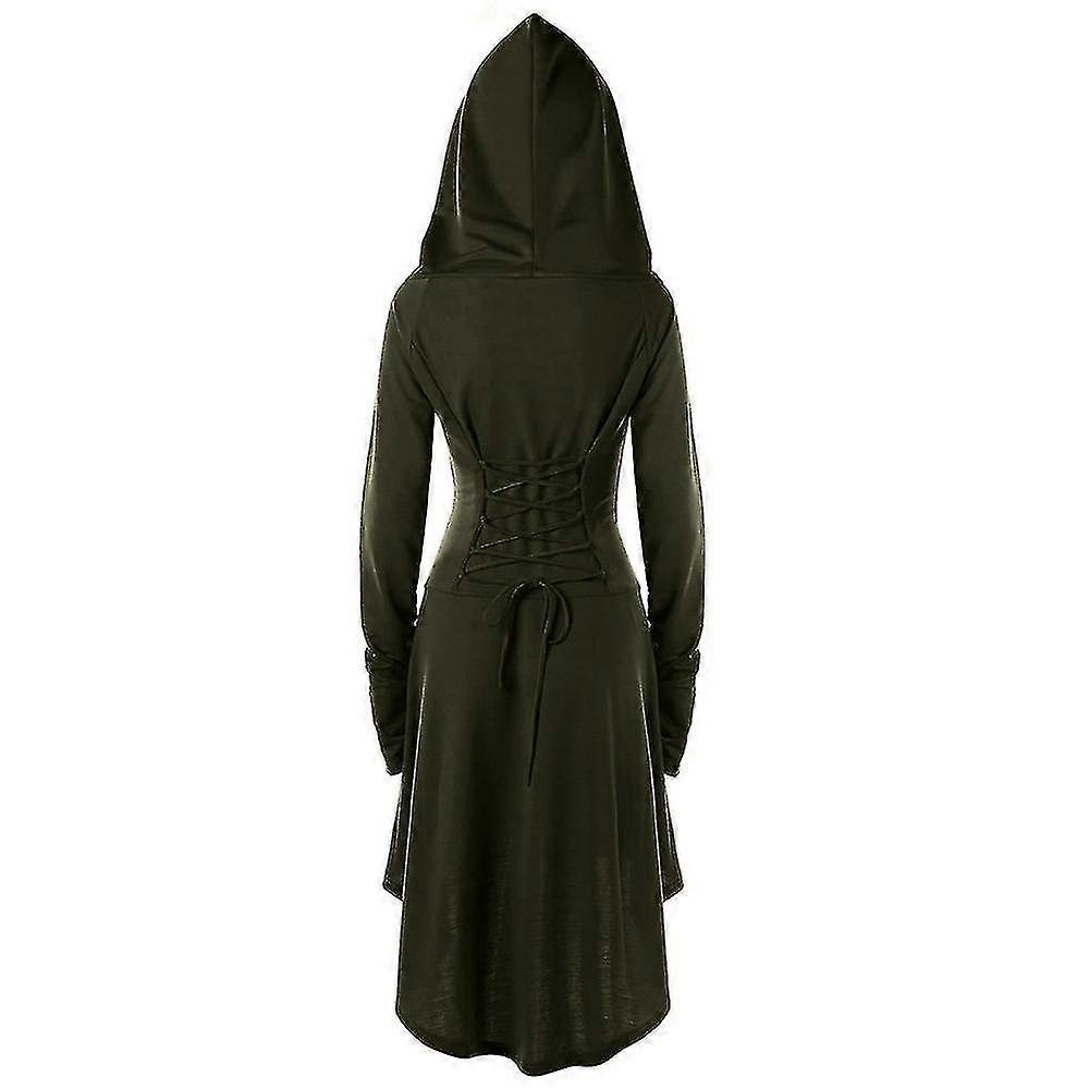 Womens Renaissance Costume Gothic Hooded Robe Long Hoodie Dress Cloak Cosplay Outfits -NMAOV