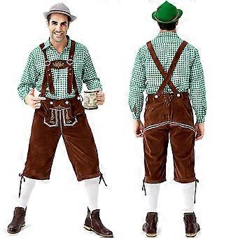 German Traditional Mens Oktoberfest Costume Plaid Shirt Embroidered Suspenders With Hat Set