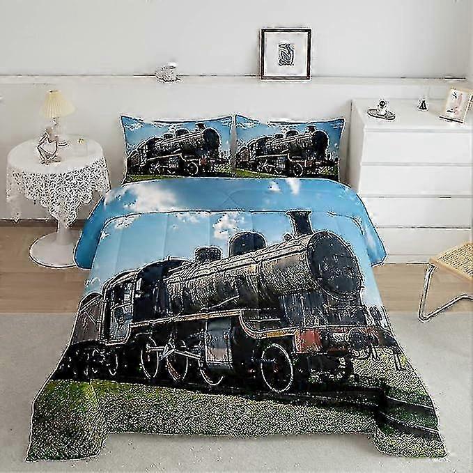 Train Microfiber Bedding Duvet Cover Sets 1 Duvet Cover And 1/2 Pillowshams Retro Steam Engine