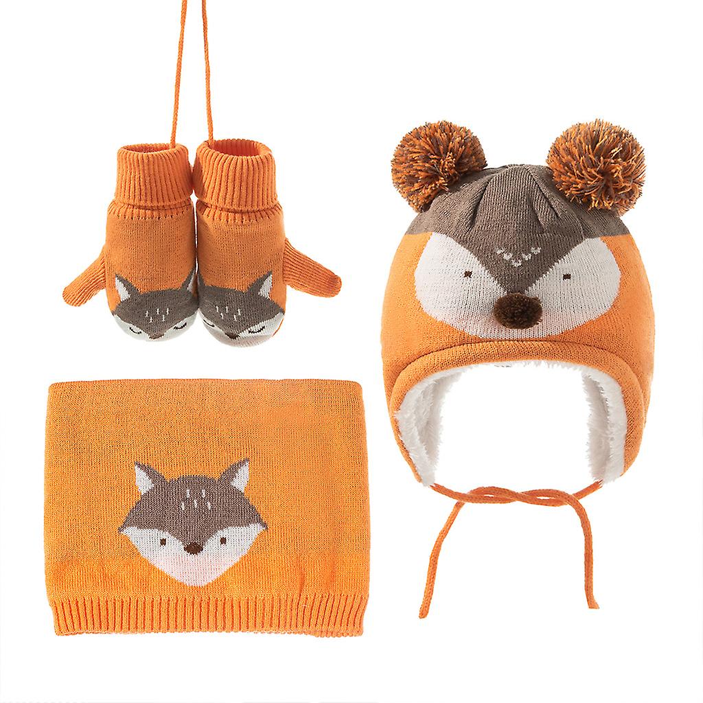 Features: Inside plus velvet-hat plus velvet design,Soft and thicken fleece lining , warm and comfortable. The fleecy hat , gloves and scarf can provide warmth , give comprehensive for protection to the for head, face, neck, hands,make you spend a warm and happy winter. Crafted from superior quality knitting yarn of fiber, feels soft, warm, and quite cozy. Stretchable & Elastic: size fits most, the hat , gloves and the neckerchief are knitted, can be stretched to fit more, wrap around for head,hand or neck snugly. Topped on the for head makes your cute look more attractive. Unisex design for both. Nicely match with any of apparel, for casual and special. Specifications: Material:Acrylic Size: Hat:23x24cm/9.06x9.45in Glove:19x9cm/7.48x3.54in Scarf:23x17cm/9.06x6.69in Color:Gray/Orange Note: 1.Please allow 1-2cm errors due to manual measurement, make sure that you do not mind before you order. 2.Due to the difference between different monitors, the picture may not reflect the actual color of the item. Package includes: 1 Set Baby Winter Hat Scarf Gloves(6 colors optional) Packing List: 1 x Hat 1 x Neckerchief 1 Pair Gloves