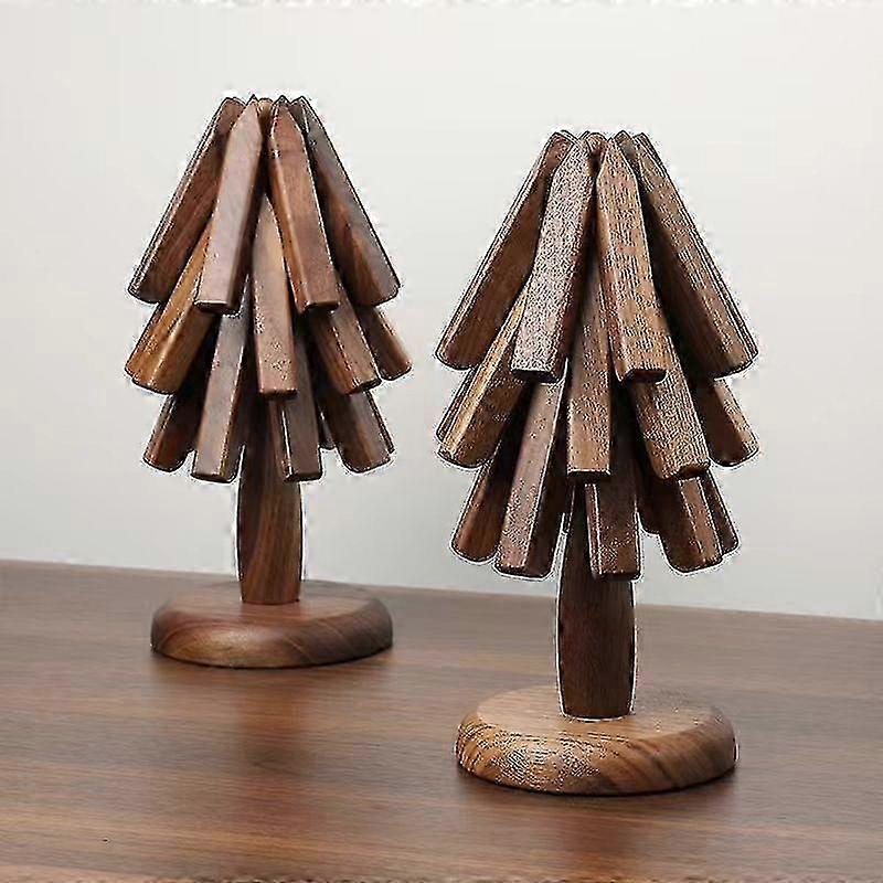 Specification: Material:wooden Size:25*10cm/9.84*3.94in PACKAGE INCLUDED: 1*Wooden support 3*Wooden Insulation pad Features: 1,Embrace Nature: With our handmade black walnut wooden trivet set, you'll own a piece of nature that beautifully decorates your kitchen counter, just like a Christmas tree. This unique kitchen accessory is a one-of-a-kind wood gifts. 2,Tree-inspired Design: Our exclusive tree-shaped wood placemats add an elegant touch to your dining table and countertops, showcasing your taste during gatherings. Each hot pads is meticulously handcrafted, carved, and polished to perfection. 3,Heat Protection and Versatility: This wooden kitchen accessory set includes three heat-resistant trivets for hot pots and pans. Unfolded, each mat has an 8-inch/20cm diameter, making it suitable for all sizes of cookware. Effortlessly protect your tabletops and countertops. 4,Exquisite Walnut Wood: Our trivets are crafted from premium walnut wood and undergo a meticulous eight-step polishing process, resulting in a smooth and delicate finish. Simply wipe them clean with a dry cloth, and they'll look as good as new. These trivets for hot dishes stand out from bamboo or birch options. 5,Beautifully Packaged: Our heat-resistant mat set comes in an exquisite gift box, making it the perfect choice for kitchen gifts ideas. It's an ideal wooden gift for Christmas or housewarming, suitable for mothers, friends, and wives.