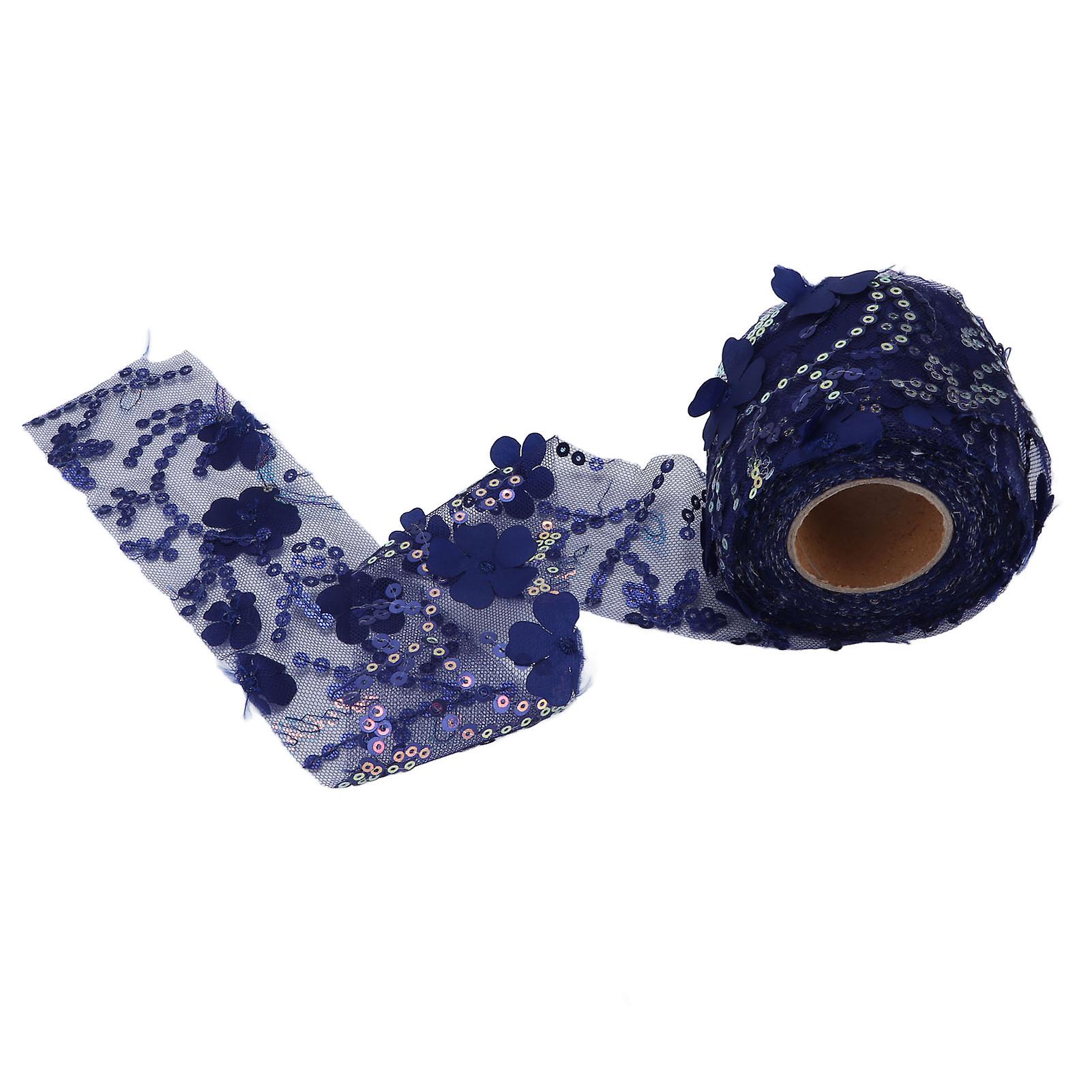 Tulle Fabric DIY Craft Abrasion Resistance Little Flash Portable Polyester Sequined Tulle Roll 6cmDark Blue