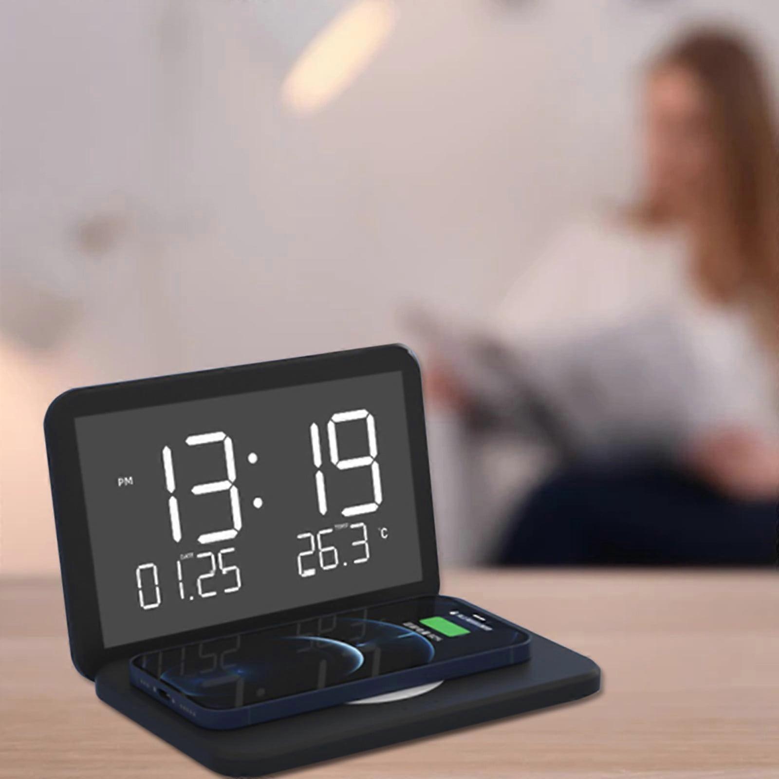 TUOBARR Digital Alarm Clock with USB & Wireless Charging, Mirror LED Display, Temp, Dimmable, compatible with iPhone