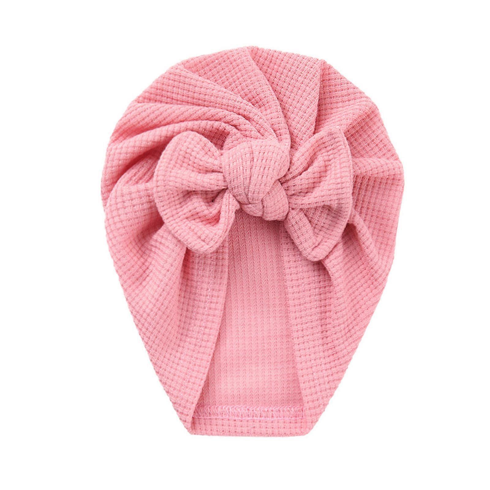 Baby Hat Girls Muslin Knot Hat Bow Knot Beanie Knit Ribbing Caps Infant Headwear Headdress Accessories Newborn Wrap Hat Korean pink