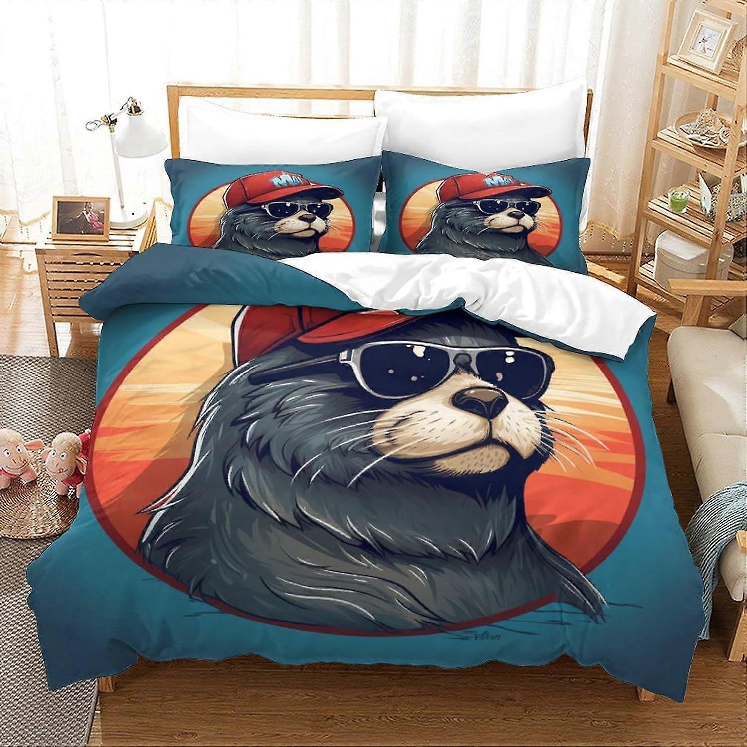 U403 Otter With Sunglasses Bedding Set 3 Piece Trendy People Printed Microfibre Zip Duvet Cover Y403