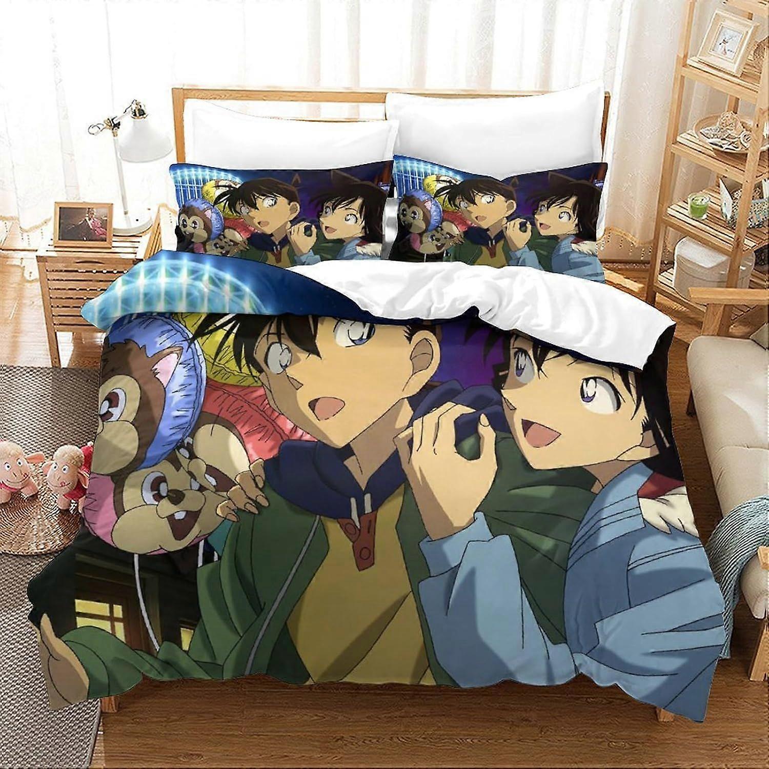 U631 Bedding Detective Conan Comforter Set 3D Printed Reversible Bed Cover, Animation Pillowcase 3 Piece Set with Zip Duvet Cover for Teenagers And Ad
