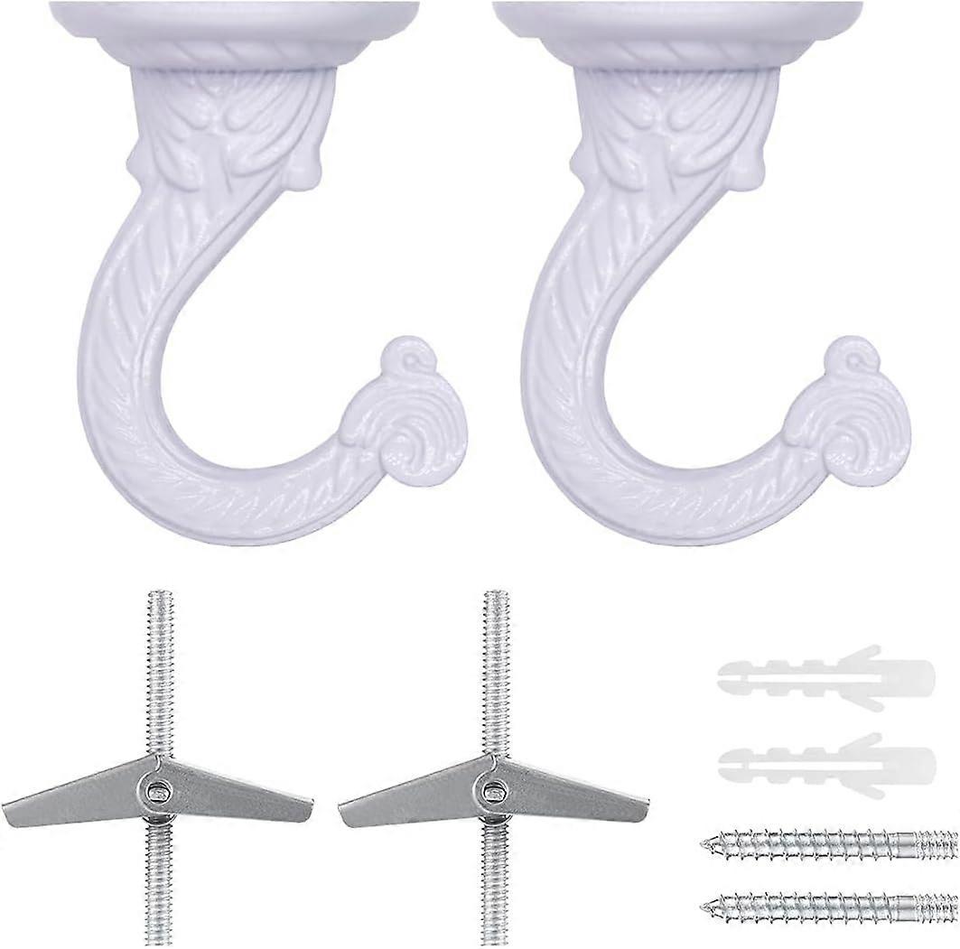 A set of 2 large and sturdy ceiling hooks, equipped with materials for hanging plants, ceiling installation, and wall installation (2 sets in white)