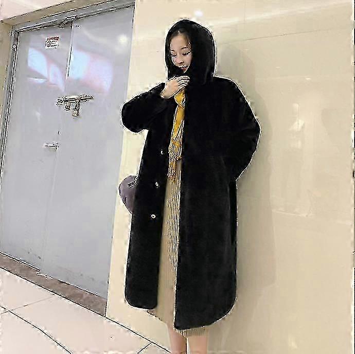 A Women's Winter XS-2 Loose Hooded Jacket and Coat, a Thickened Mink Fur Plush