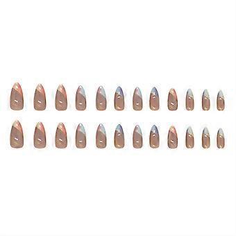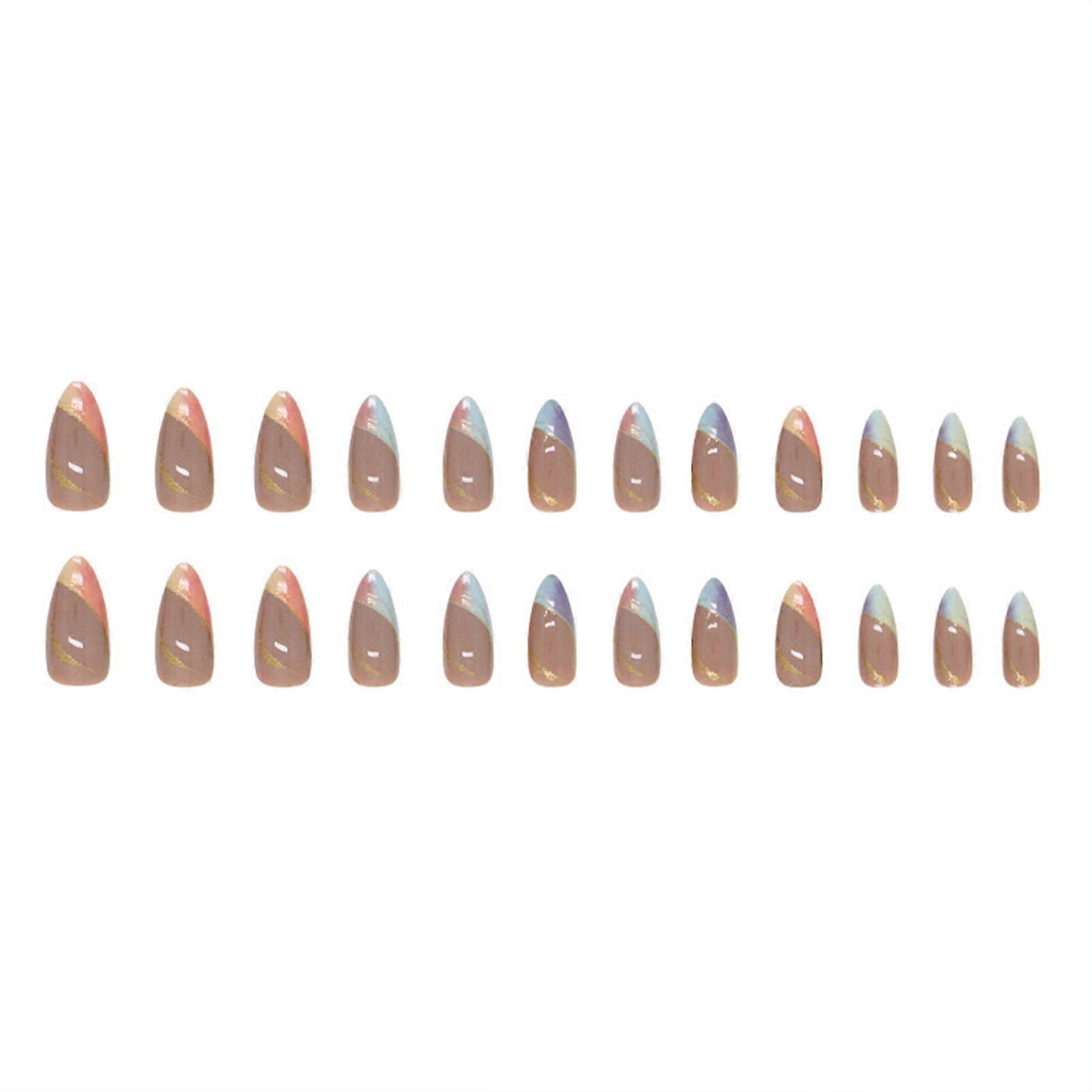Colorful Gradient Almond Fake Nails Reusable Wearable Medium Nails For Fingernail Diy At Home