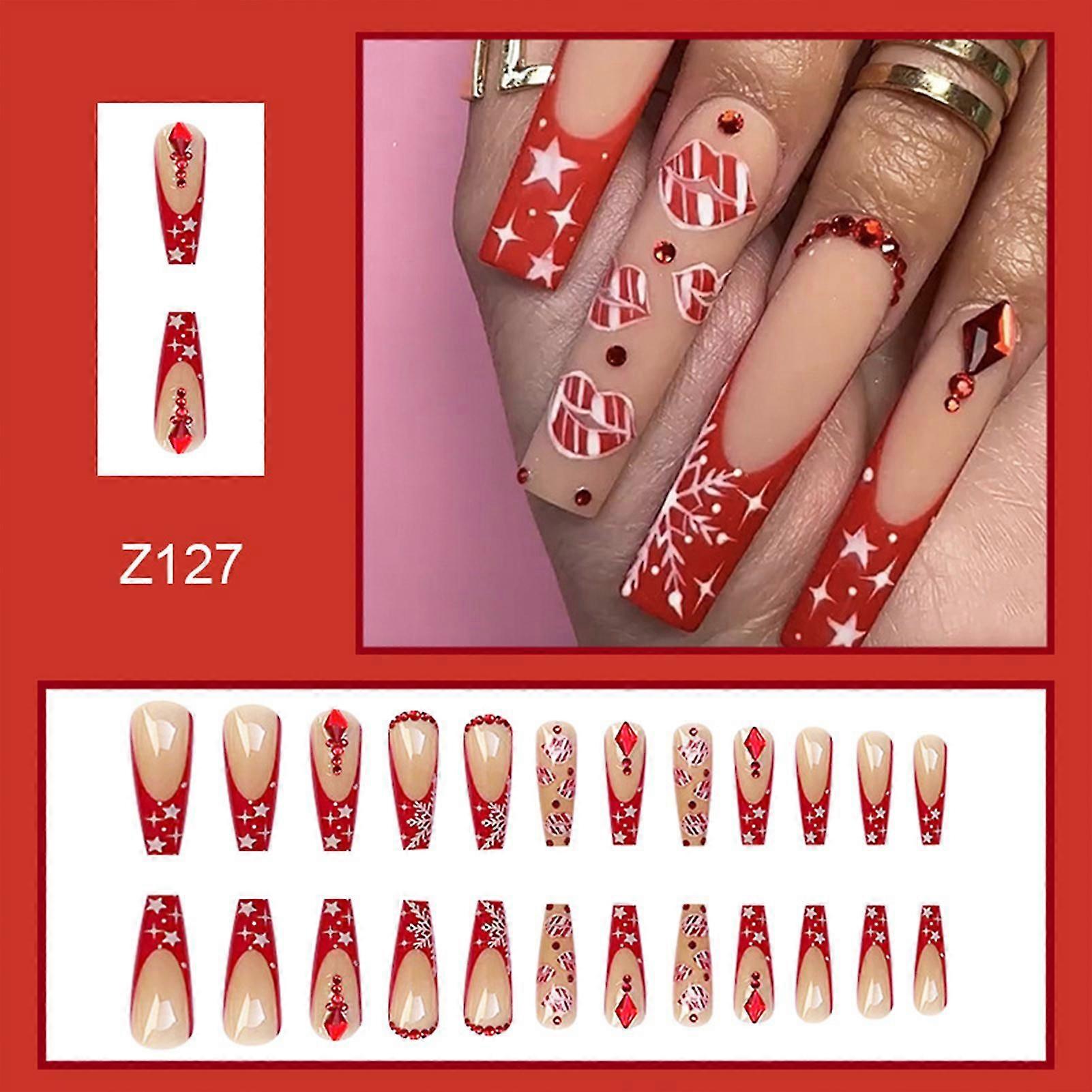 French Style Fake Nails With Rhinestone Not Hurting Hands Not Easy To Break Nail Glue Models