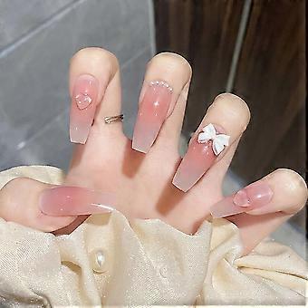 Women False Nails Fake Nails Gradient Pink Long Fake Nail Glue Models