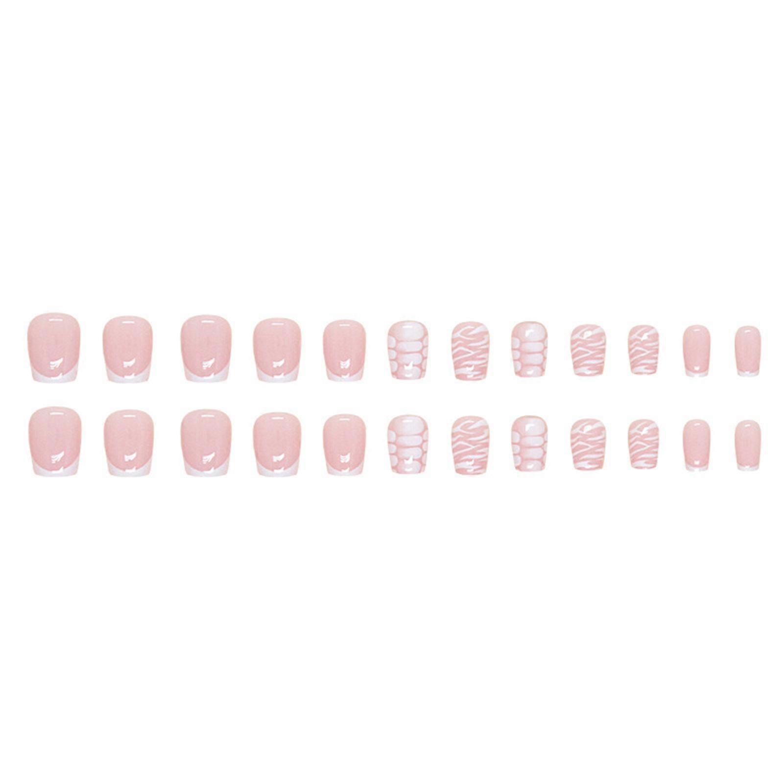 Light Pink False Nails with White Edge Full Cover Square Artificial Nail Tips