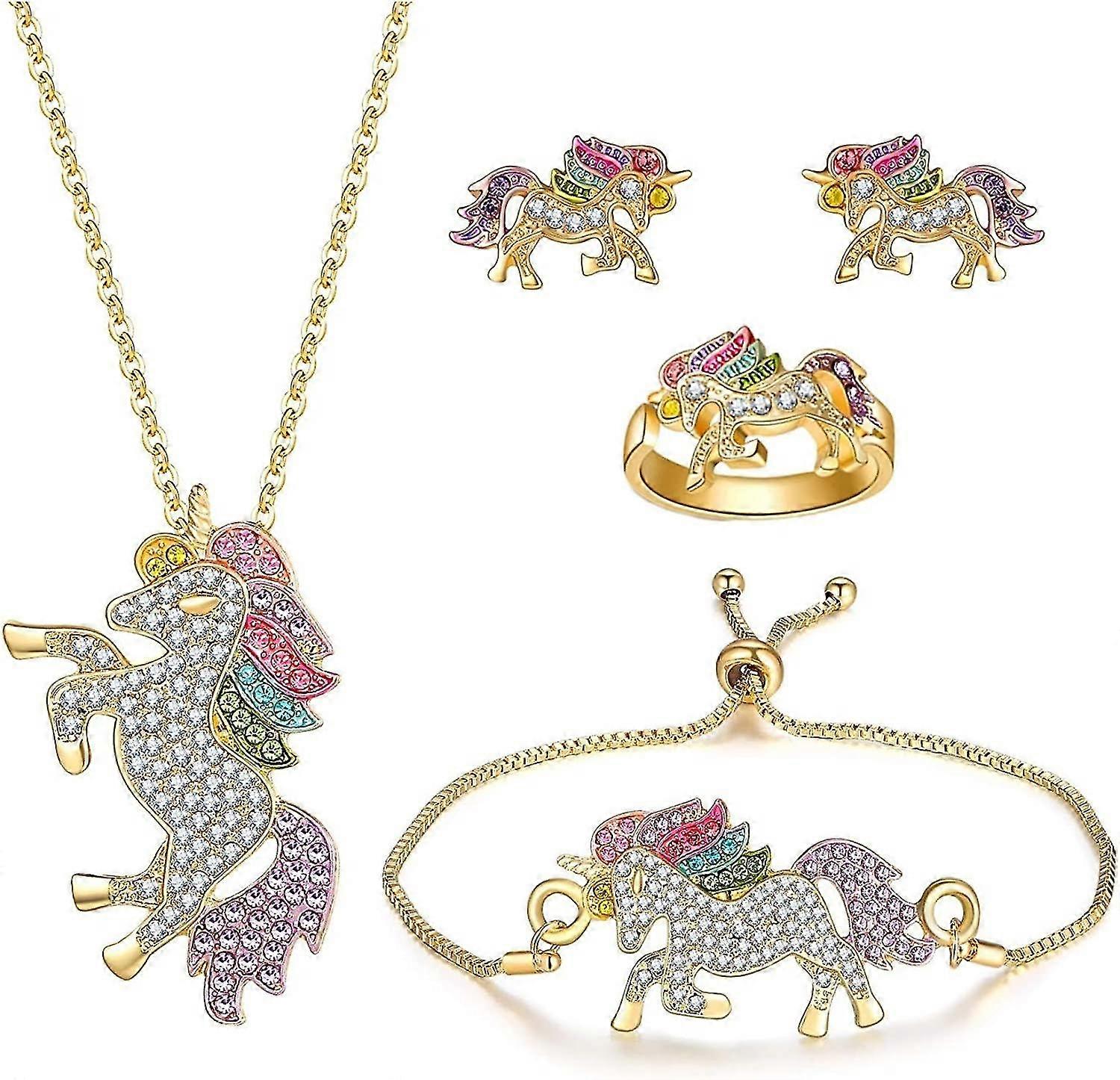 Unicorn Necklace - 2 Or 4 Pack Rainbow Unicorn Necklace Bracelet Set For Girls Jewelry Unicorn Gifts Set