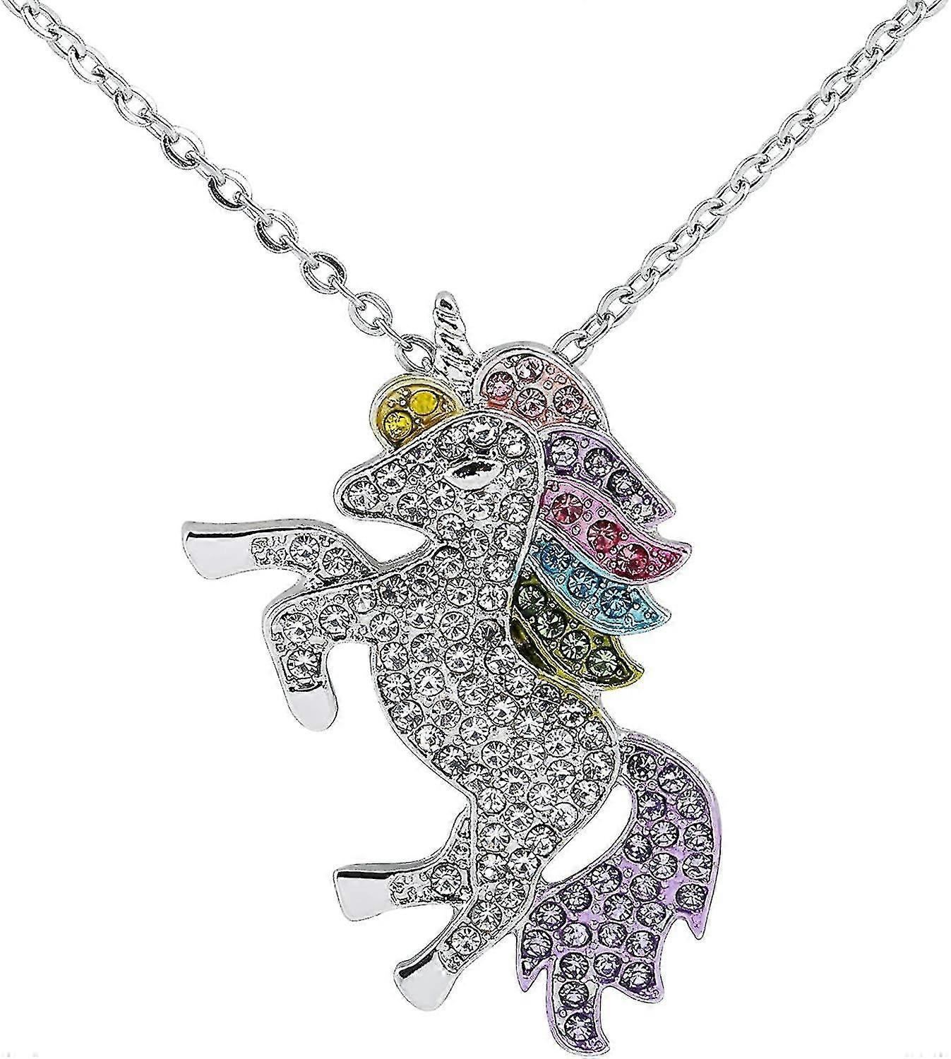 Unicorn Necklace Charm Rainbow Color Supporter Silbrige Chain With Black Velvet