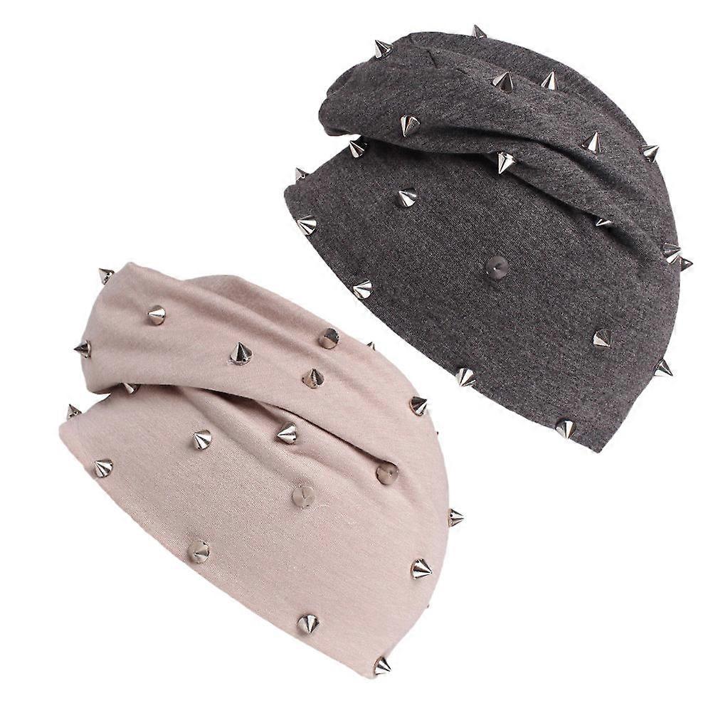 Unisex Beanie Cap Punk Rivet Hat Autumn and Winter Hats 28 x 24 x 1cm Warmth 2Set