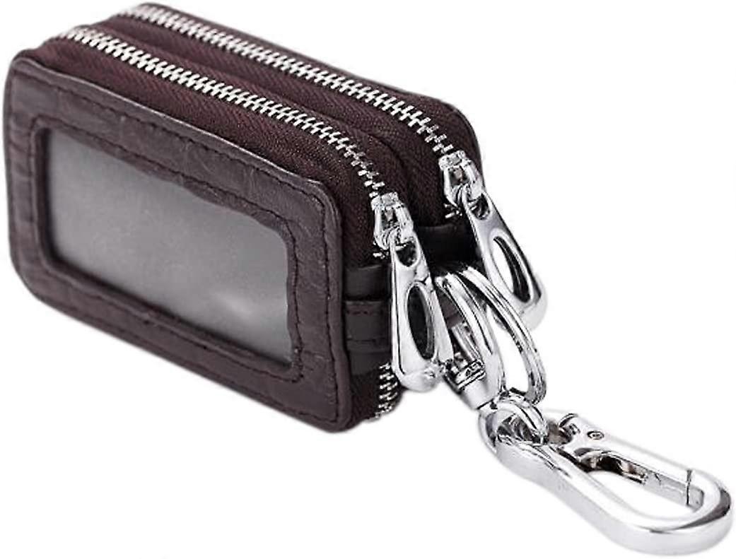 Unisex Genuine Leather Key Chain Case Bag Car Key Holder with Zipper (Black)