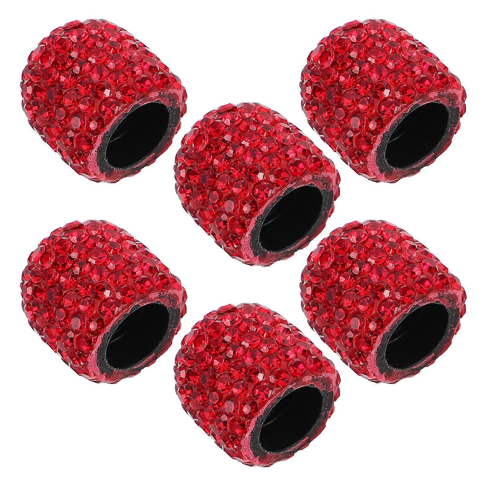 Universal Rhinestone Tire Valve Caps for Car Use 6Pcs Sparkling Red Design
