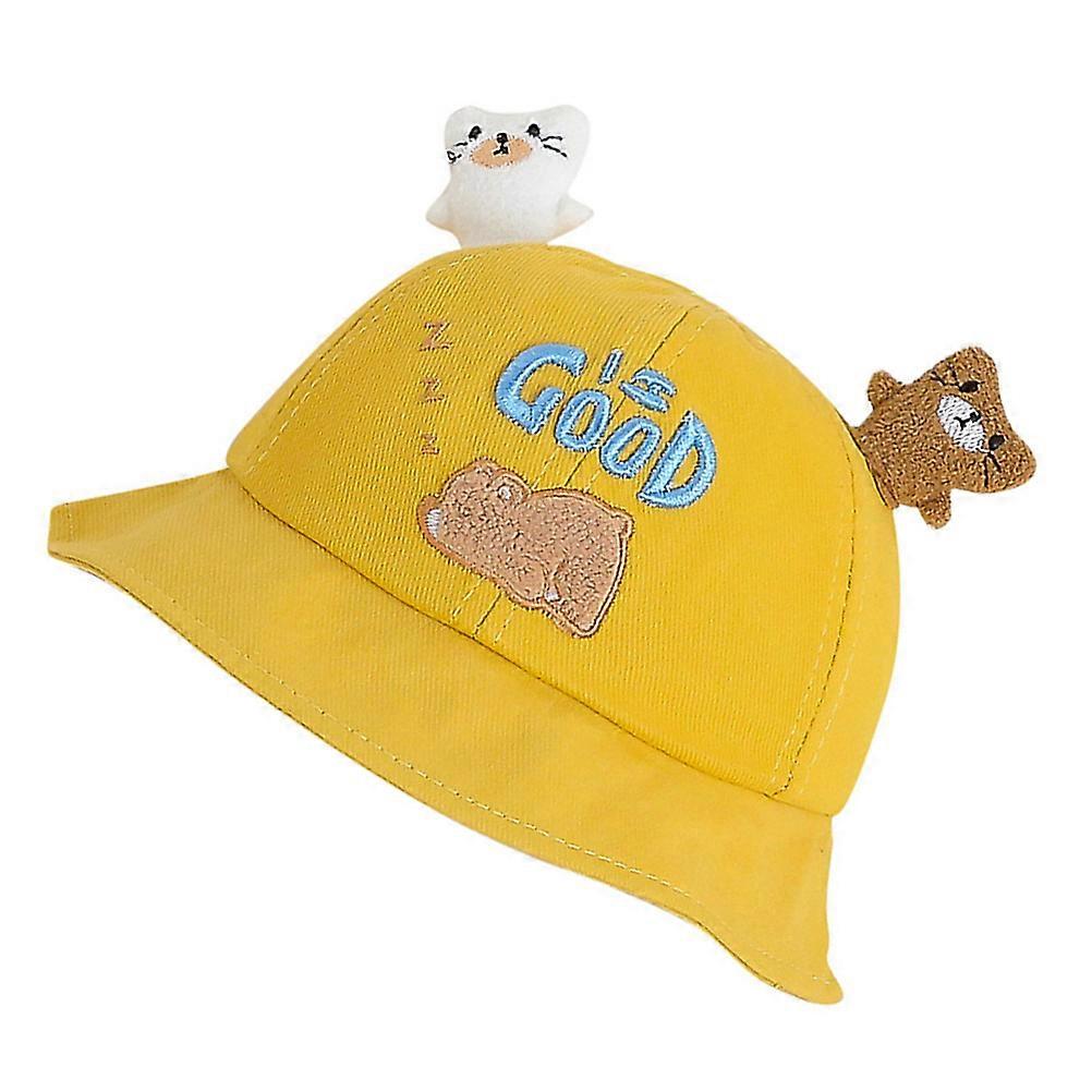 Yellow Kids Sun Hat Cartoon Bear With Wide Brim For Hiking Camping Travel 29X29Cm 1Pcs