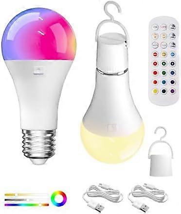 USB Rechargeable Light Bulb with Remote Control, RGB Color Changing Bulb, 12+3 Color Temperature, E27 LED Dimmable Battery Powered Bulbs, Touch Contro