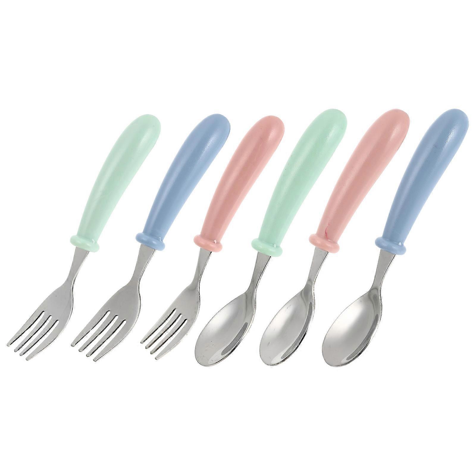 Toddler Metal Utensils 6Pcs Stainless Steel Fork And Spoon Assorted Color Ergonomic Design For Children Meals