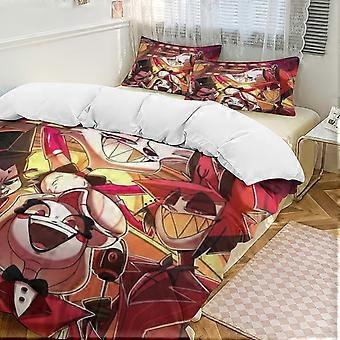 v207 Hazbin Hotel 2 Cama Capa de Edredão Microfibra Conjuntos de Cama Leve 3 Peças Conjuntos de Edredom, 1 Capa de Edredão e 2 Fronhas para Crianças aa207