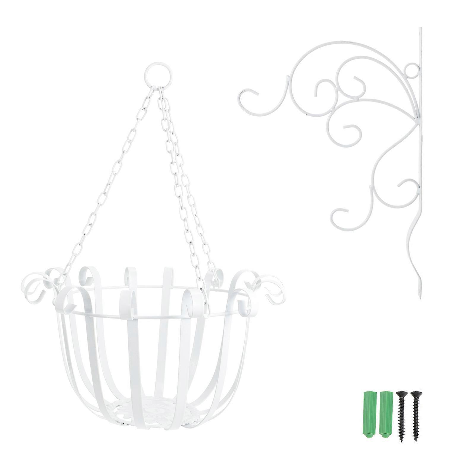 White Iron Wallmounted Flowerpot with Rack for Home Decoration 10.5 Inches