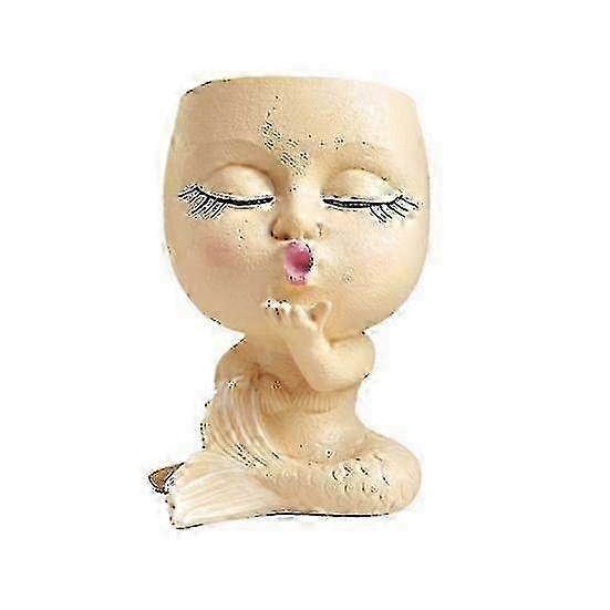 Resin Figurine Flowerpot - Women Head Design with Drainage Hole for Indoor & Outdoor Plants