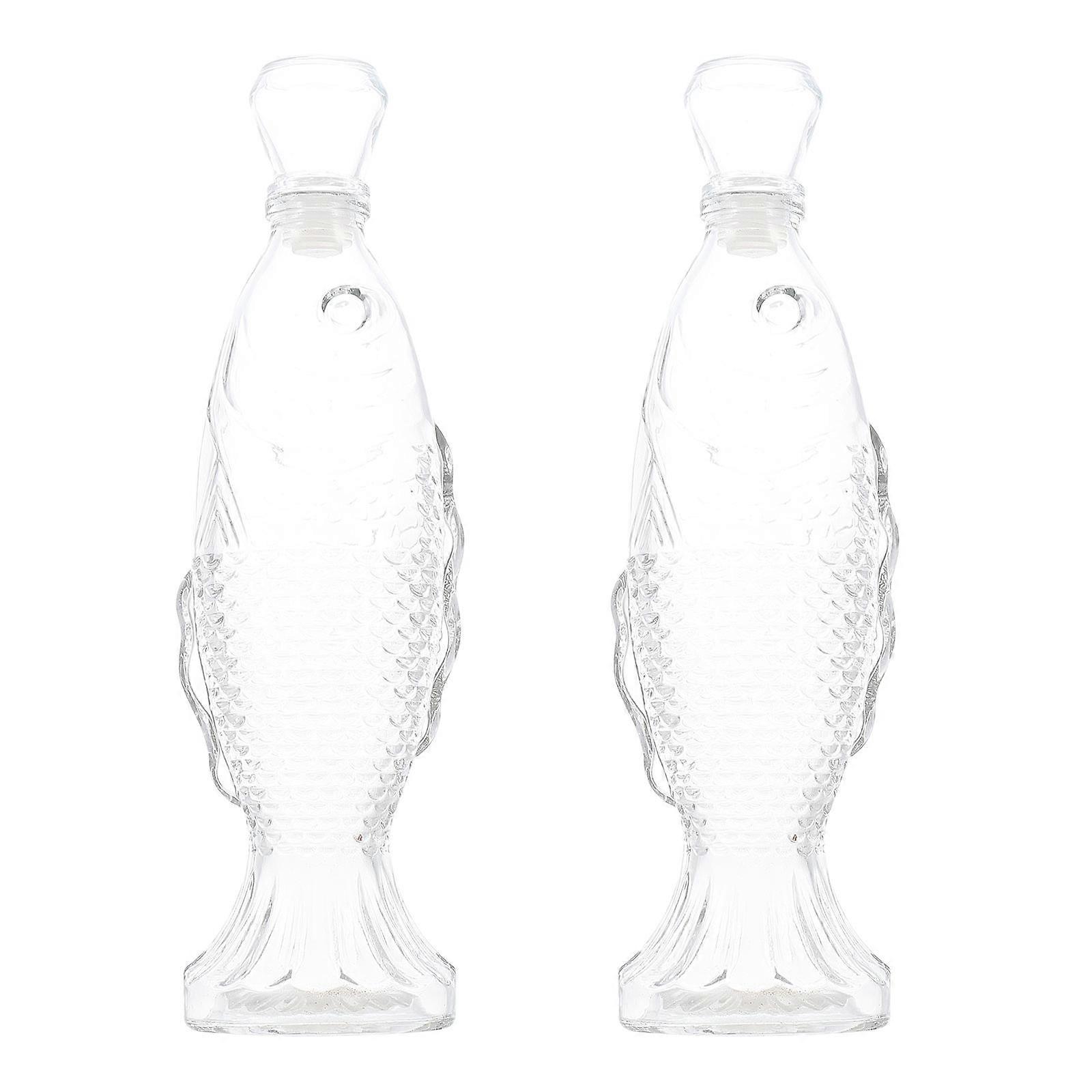 Clear Glass Vase Fish Shaped Lidded Transparent Flower Vase Wishing Bottle 250ml 2Pcs