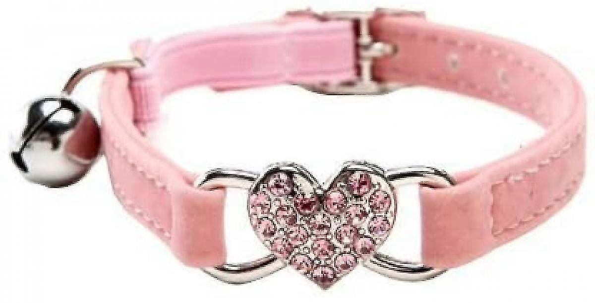 Veeki Heart Bling Cat Collar With Safety Belt And Bell 8-11 Inches(pink)