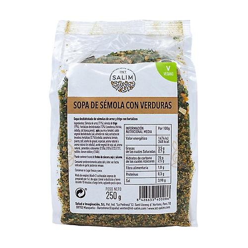 Semola Verduras from Int Salim is a delicious and nutritious dehydrated soup of rice and wheat semolina with vegetables. It is recommended to mix 2 tablespoons (approximately 20/25 g) for every ¼ liter of water. Heat to a boil, stirring occasionally, and let it simmer for 10 minutes over low heat. May contain traces of nuts and sesame. Store in a cool, dry place