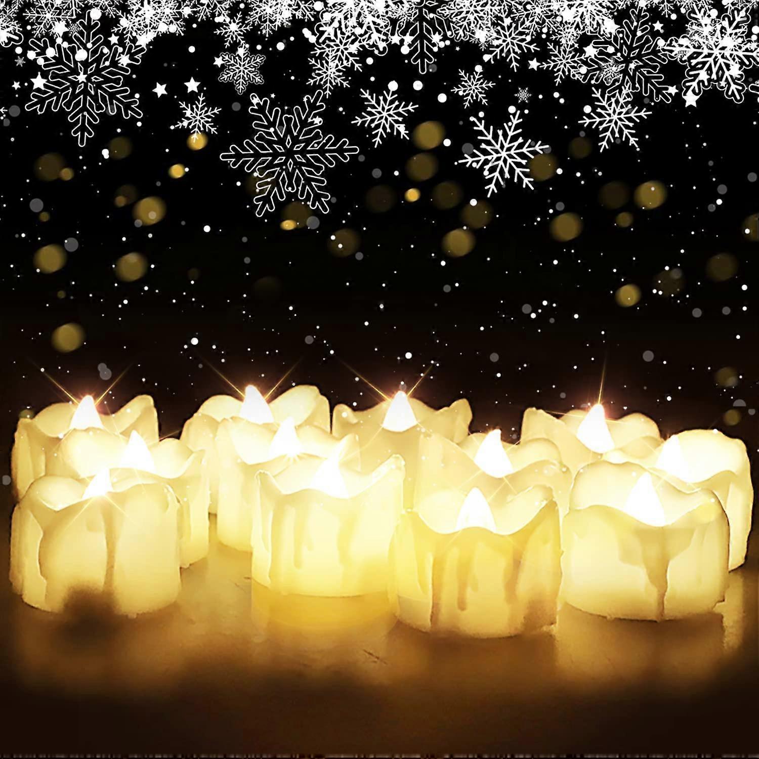 Flameless LED Tea Light Candles with Timer, Set of 12 Battery Operated Flickering Tealights