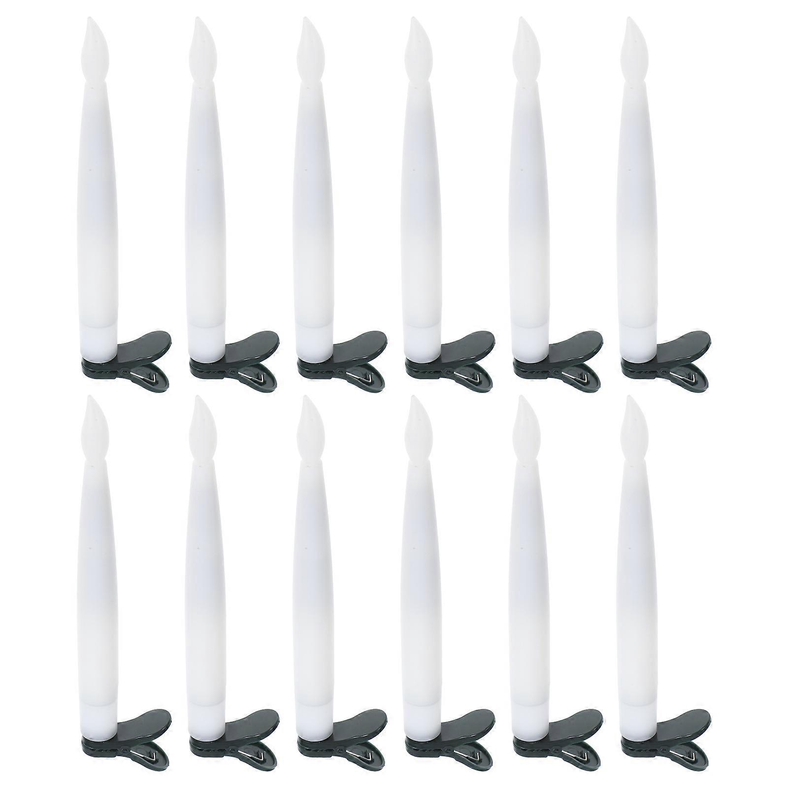 Flameless LED Taper Candles with Clips Warm White Frosted Wedding & Holiday Candle Lights for Christmas Tree Decoration Easy Install with Fishing