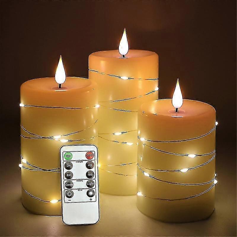 Led Candles 360 Degree View, Starry Sky String Lights, Set of 3 Led Candles with 10 Button Remote Control, 24 Hours Timer Function, Dancing Flames
