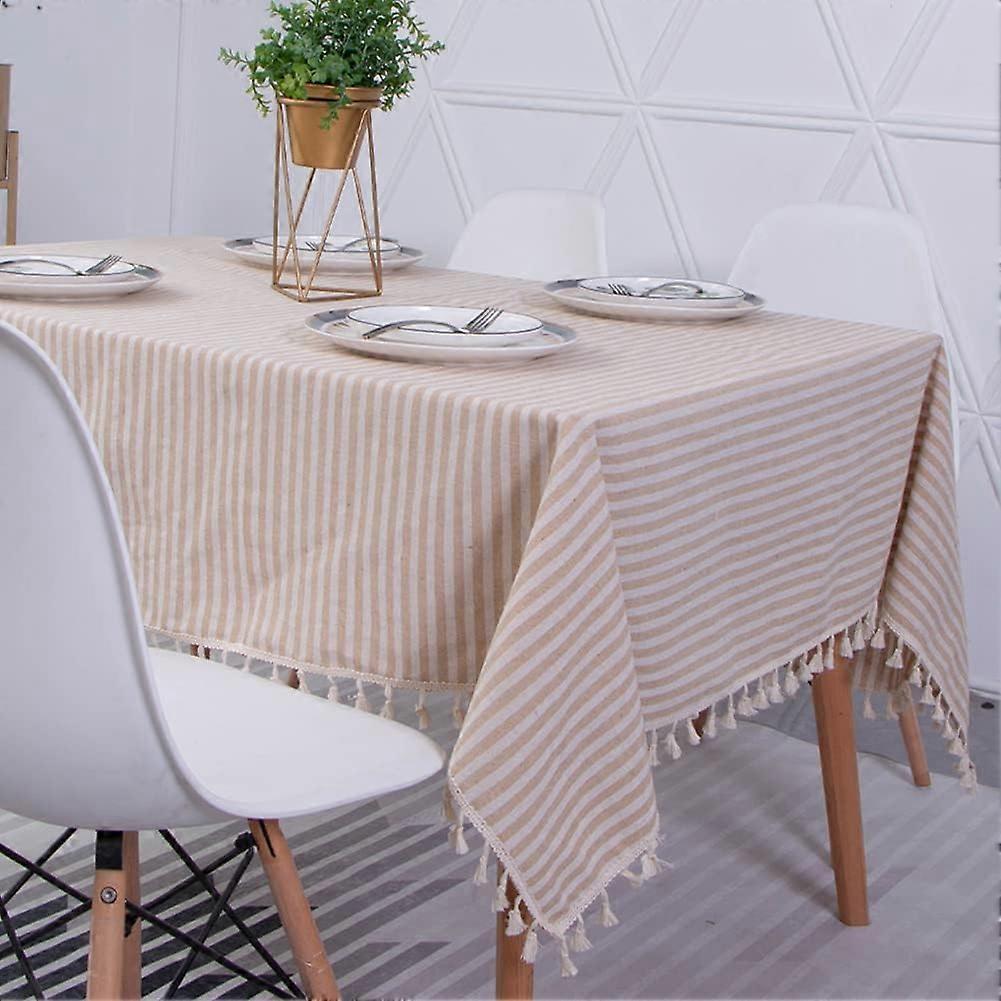 Promotional sales Sturdy cotton linen tablecloth with stripes and fringes