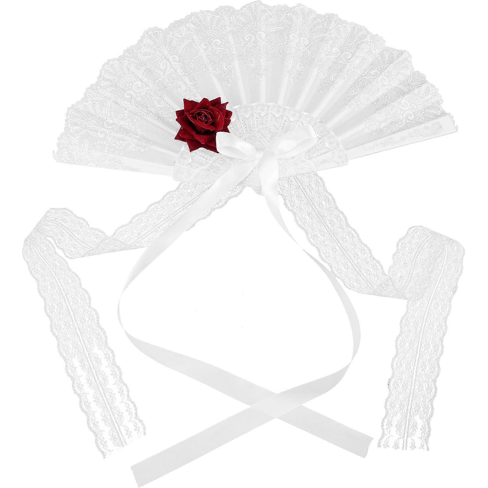 White Vintage Lace Fan for Decor Silk Cloth and Plastic Foldable Hand Fans 7 Inches