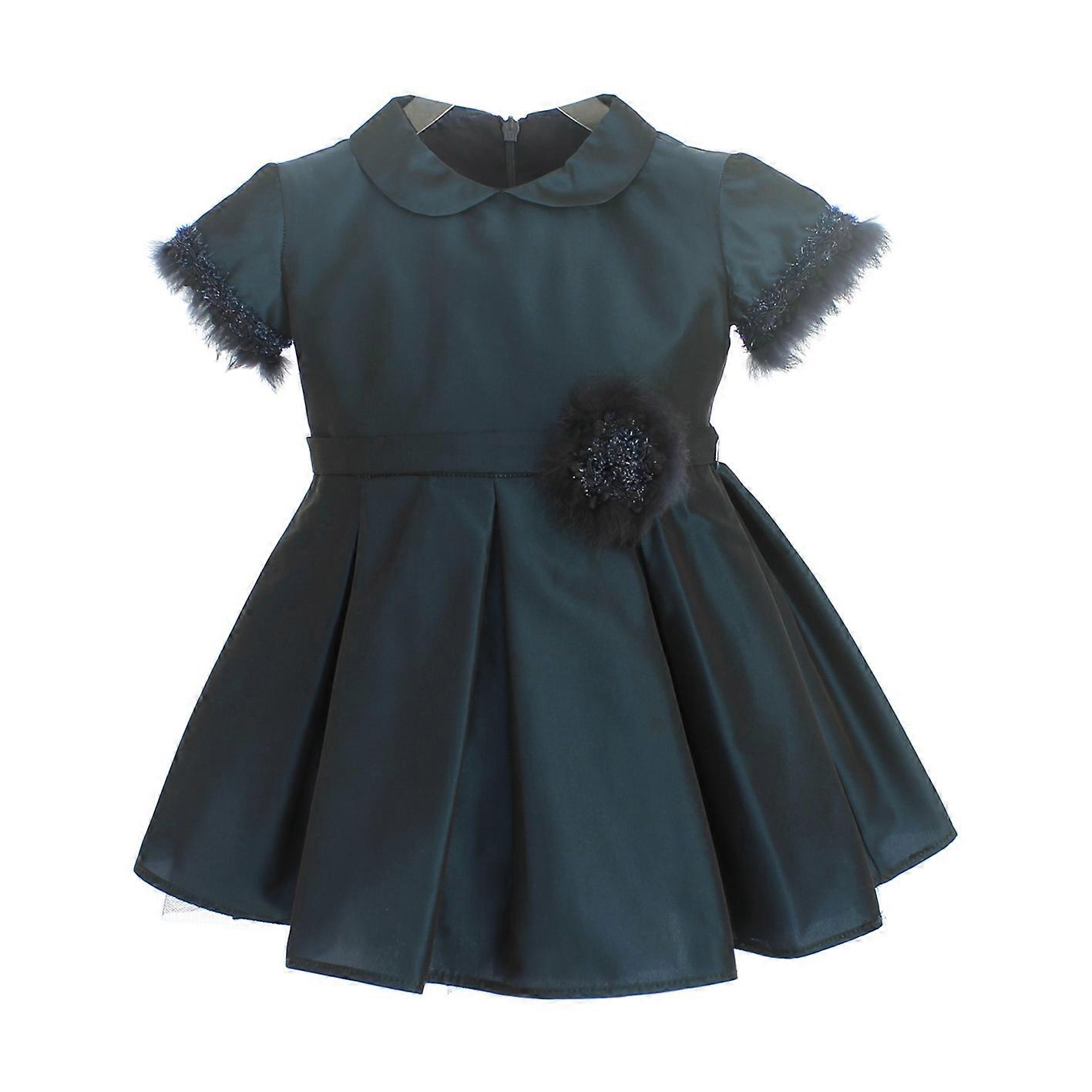 Abito da neonata Bufi con colletto, a mezza manica sfrangiate con applicazioni paillettes e fiore laterale,