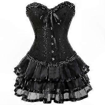 Plus Size Women's Corset Dress with Tutu Skirt Burlesque Costume Set Overbust Corselet Mini Outfit