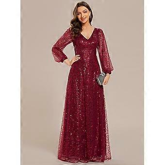 Vestido de Noite A-Line Ever-Pretty para Mulheres Elegantes com Decote em V e Lanterna de Manga Longa com Lantejoulas