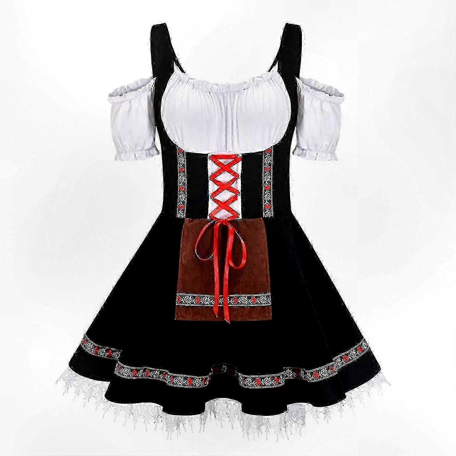 Women's Classic Lace-Up Dirndl Dress, Oktoberfest Outfit in Plus Sizes S to 4XL