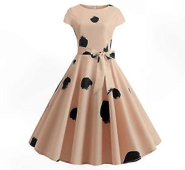 2022 Trendy Women's Retro Print Short-Sleeve Hepburn Style Lace-Up Dress